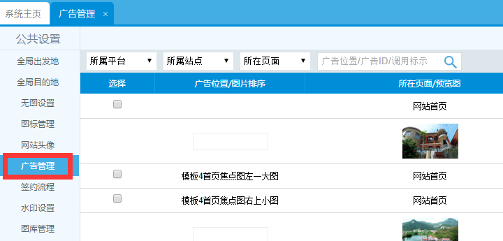 選擇廣告位置為線路首頁導航右側,點擊后面的修改