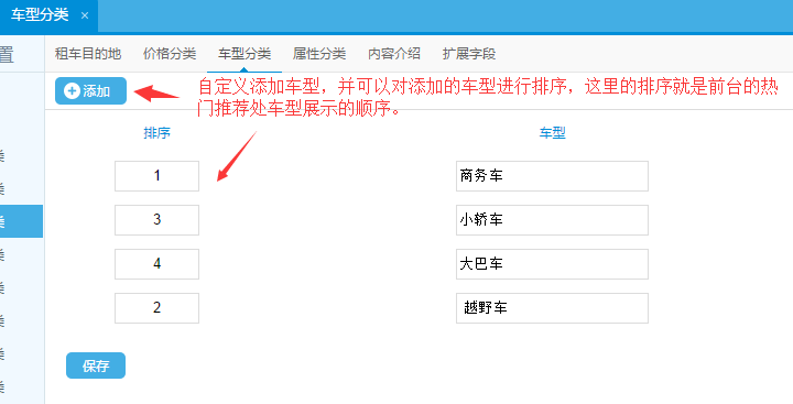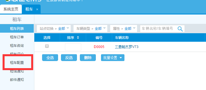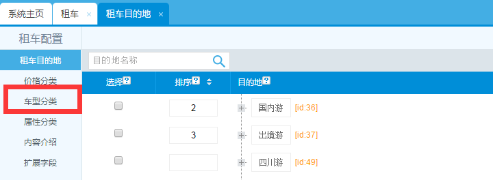 5.0版本租車首頁熱門推薦車型的后臺設置:租車-車型分類