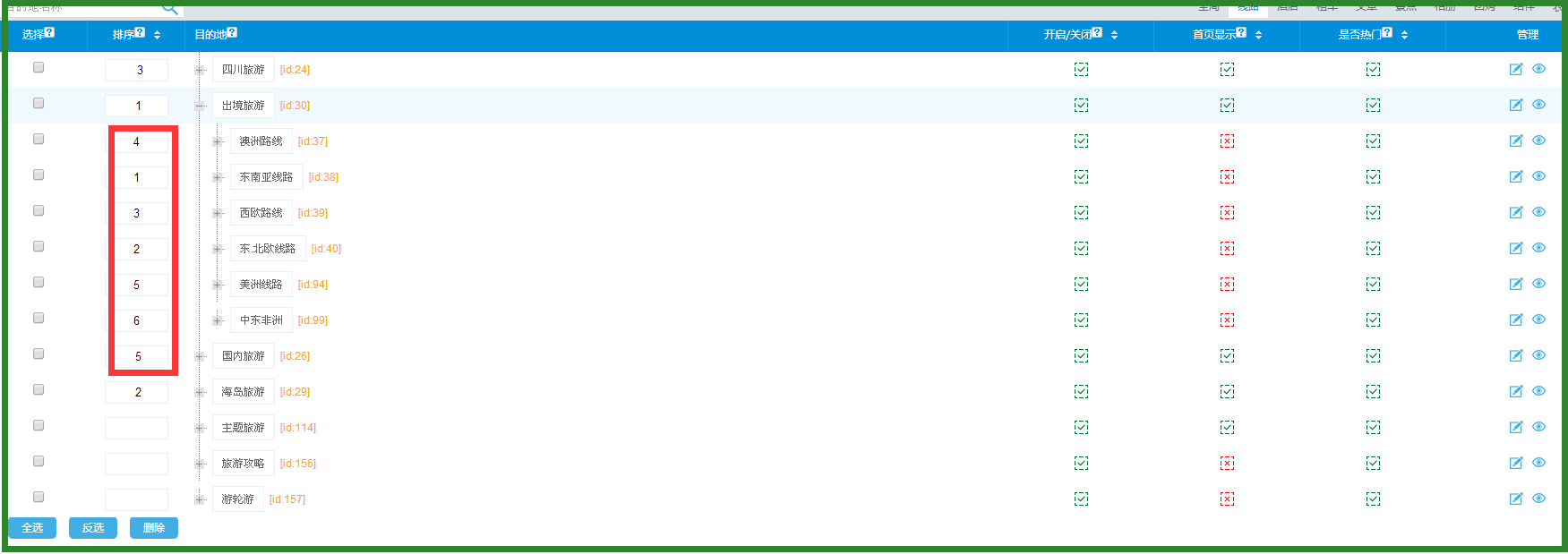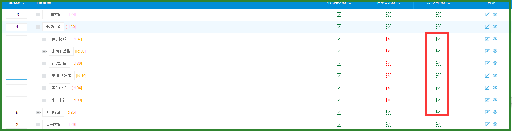一。將后臺的目的地開啟熱門后。左側的熱門目的地按照開啟熱門的順序顯示