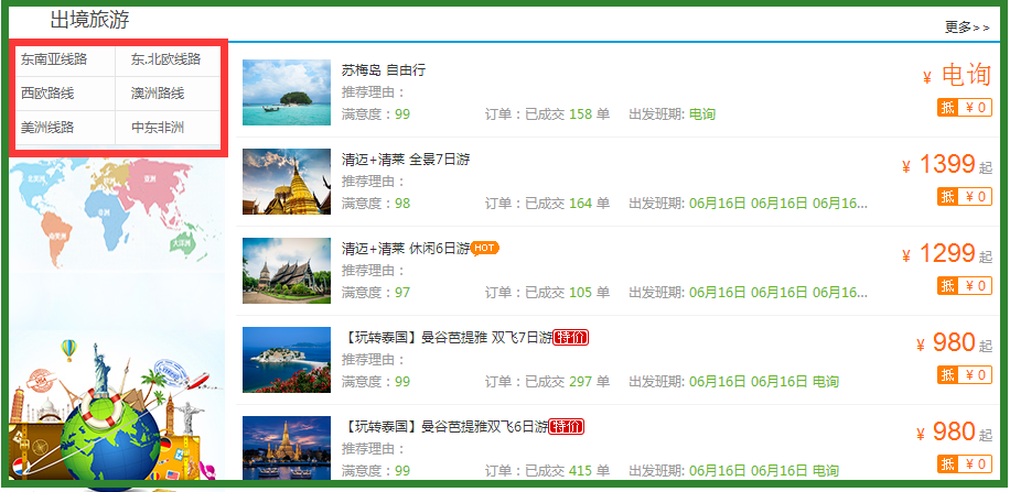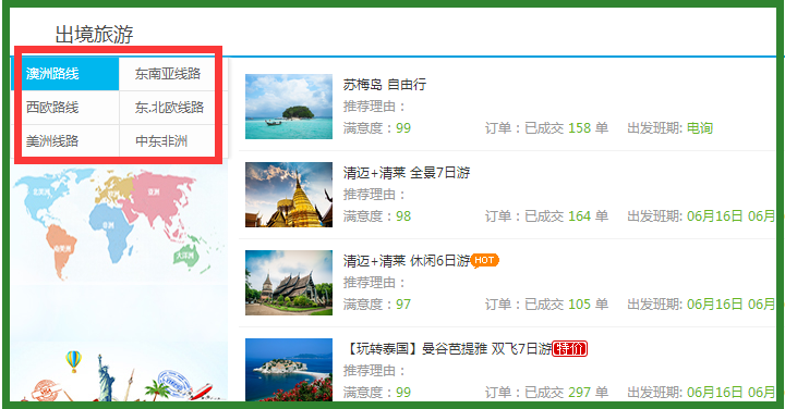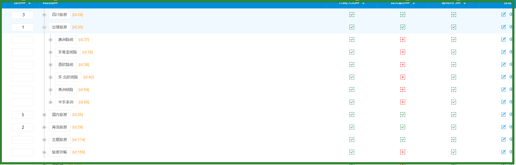 在后臺的線路目的地將設置的二級目的地設置成熱門顯示(以出境旅游為例)