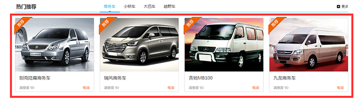 5.0版本租車欄目首頁熱門推薦下產品排序:租車-車輛類型