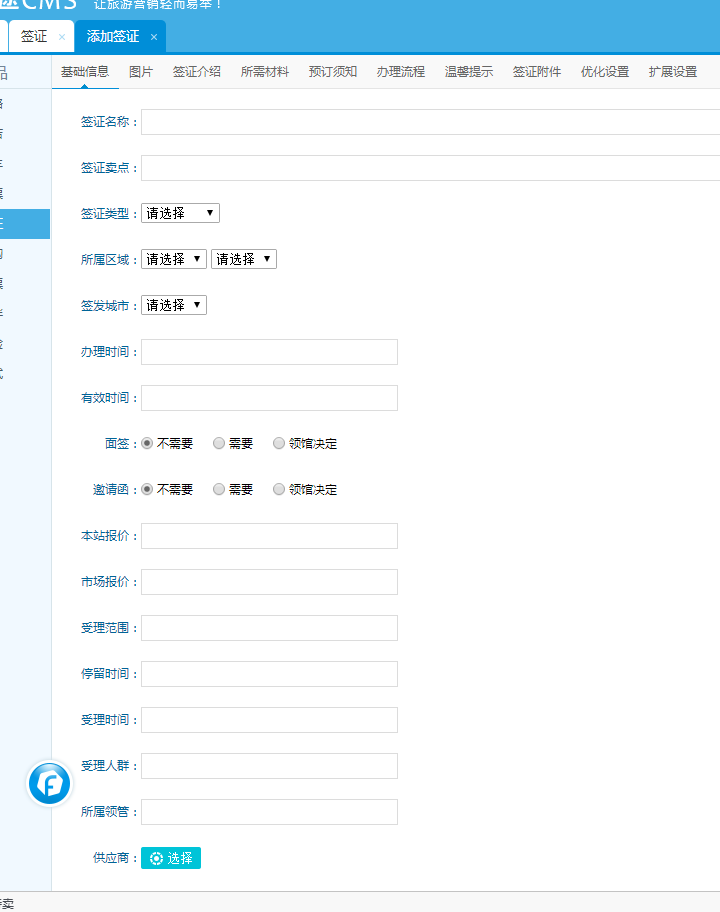 1.后臺進入簽證;