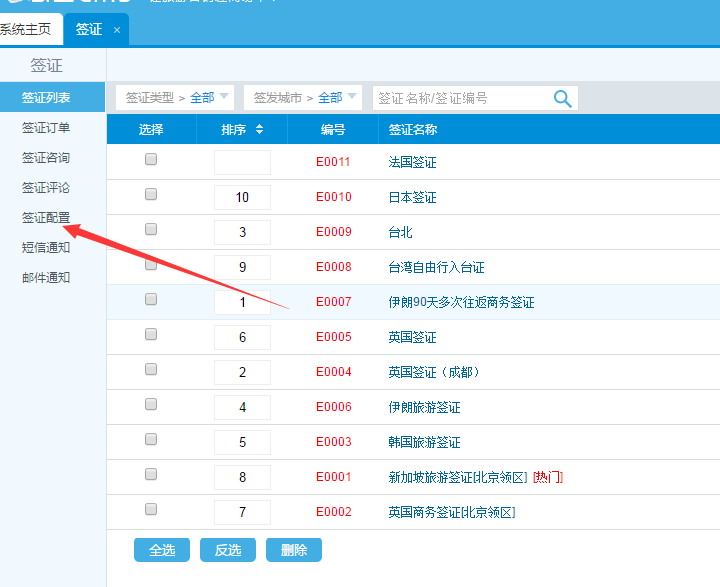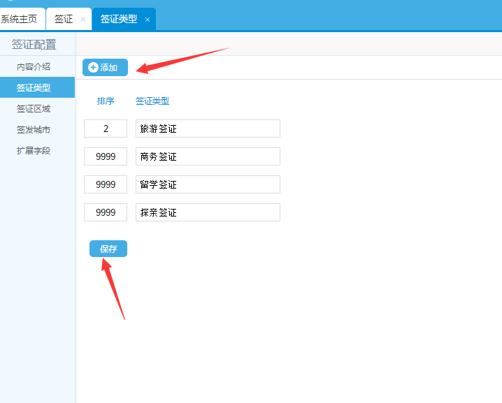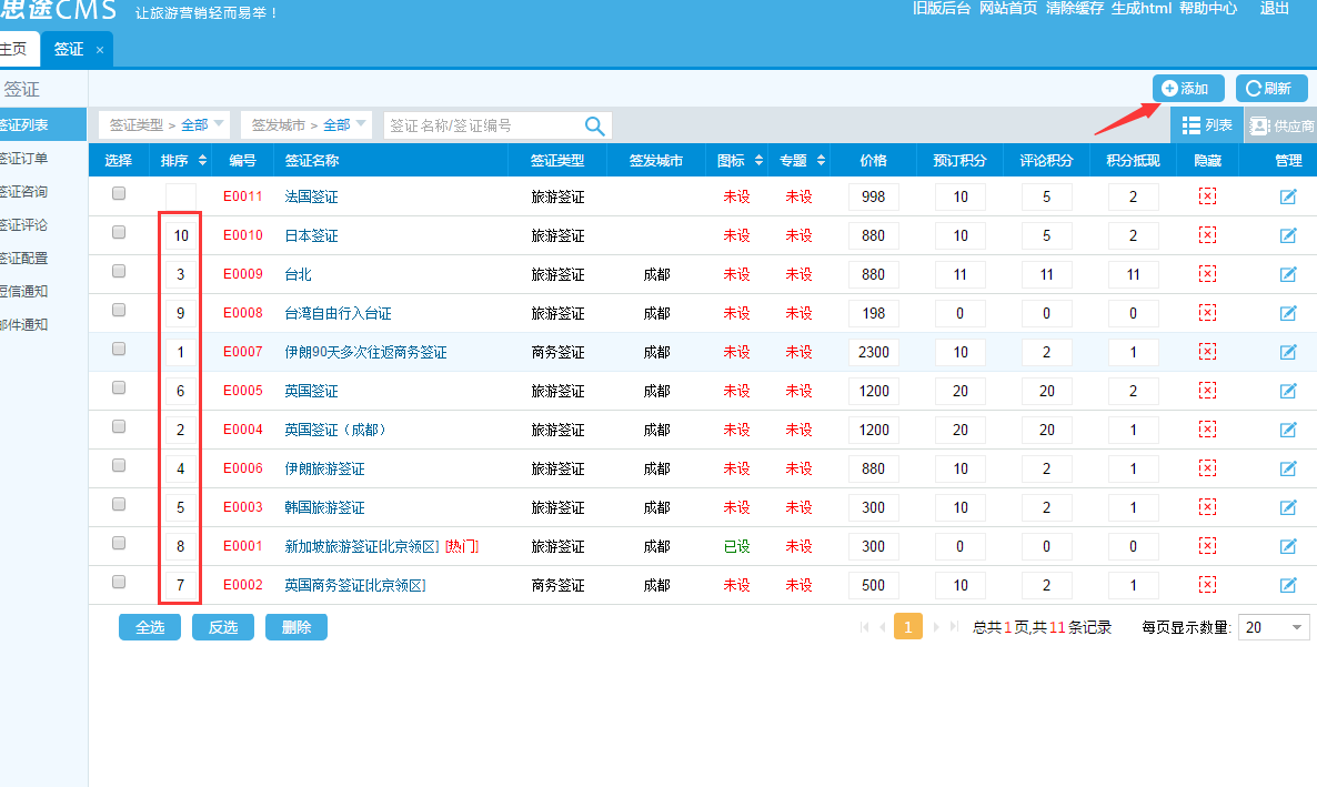 第三步:添加簽證產品,然后進行排序;