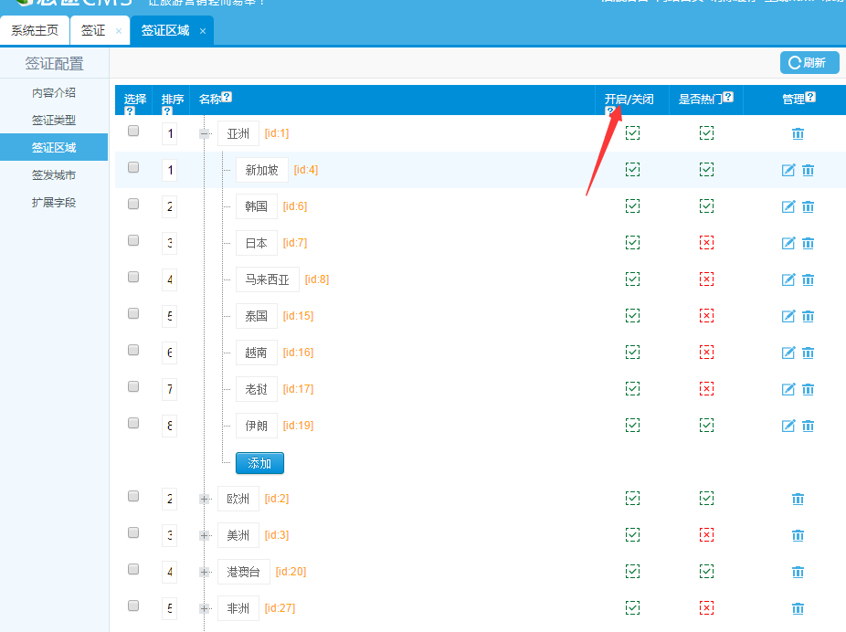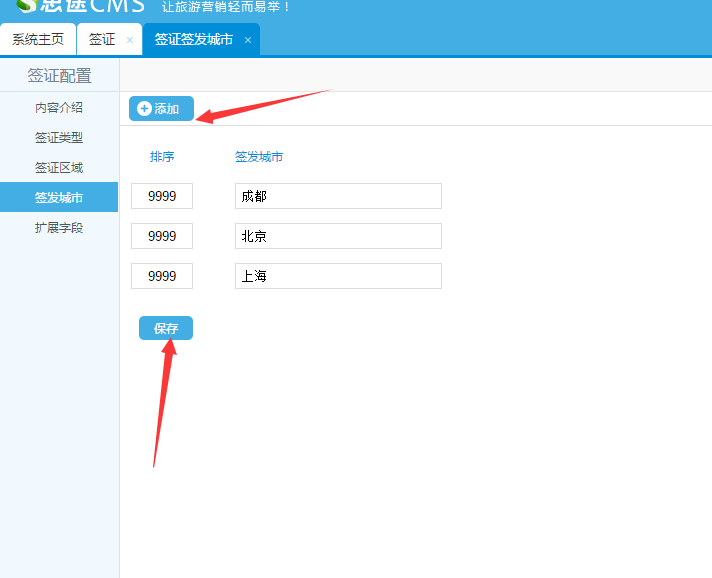 2.設置簽證類型、區(qū)域,簽發(fā)城市;
