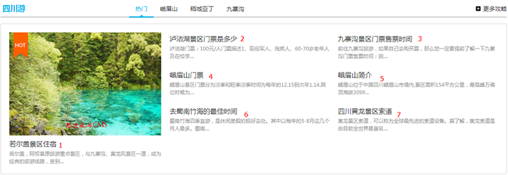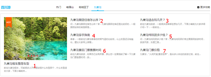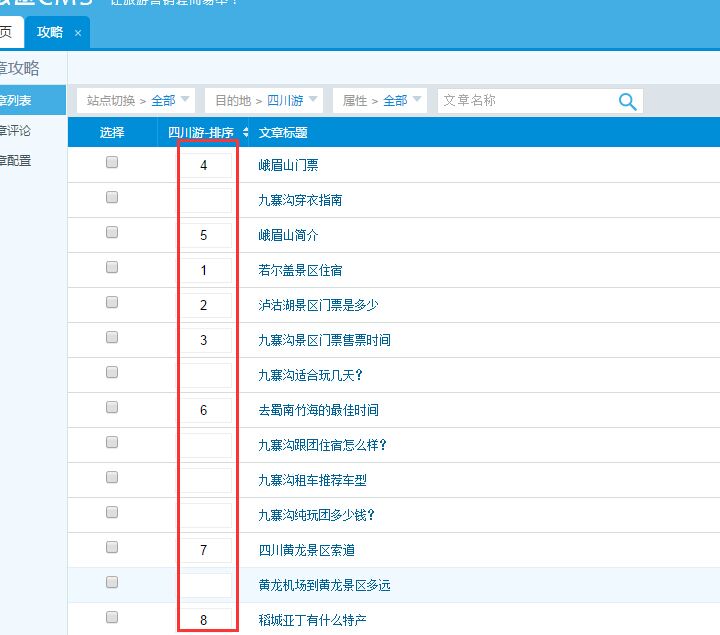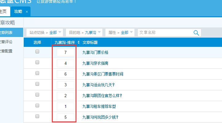 1、九寨溝里的攻略,不設置數字排序的話,就是按照后臺添加攻略的順序來顯示。最新添加的排在第一位。