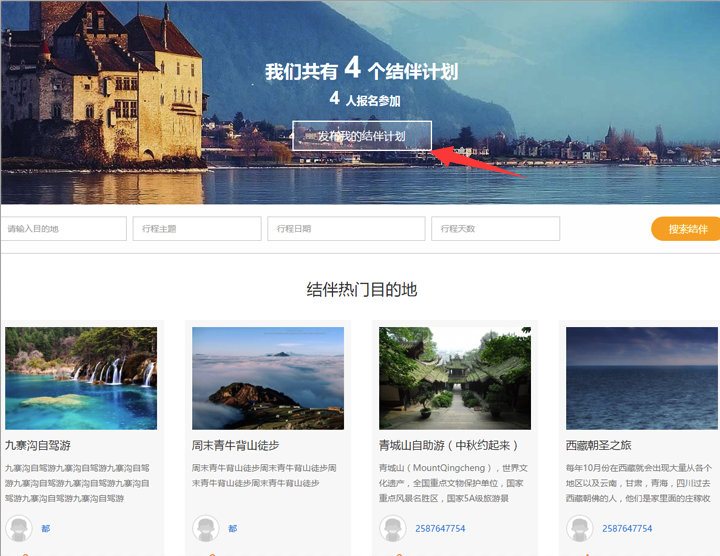 此版塊調取結伴信息,操作者為訪客,操作位置在網站前臺結伴欄目: