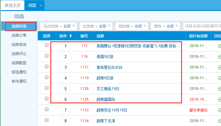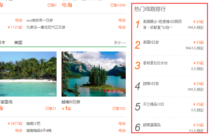 191號首頁模板右側的線路排行,是按后臺的所有線路的數字從小到大排序來的,取前6條信息展示。