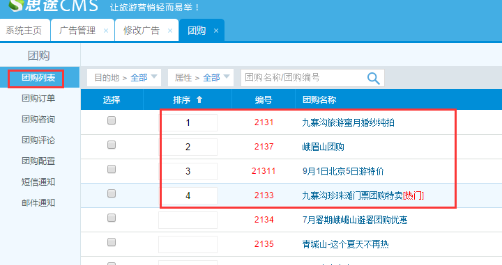 191號首頁模板團購版塊總共顯示4個團購產品(包括正在進行的和即將開始的),是按后臺的所有團購產品的數字從小到大排序來的,取前4條信息展示。
