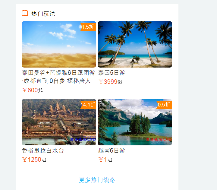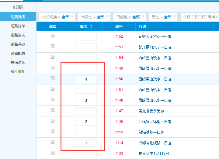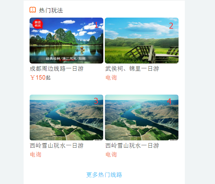 2:排序的情況下:展示后臺線路產品全部排序前四個的產品。