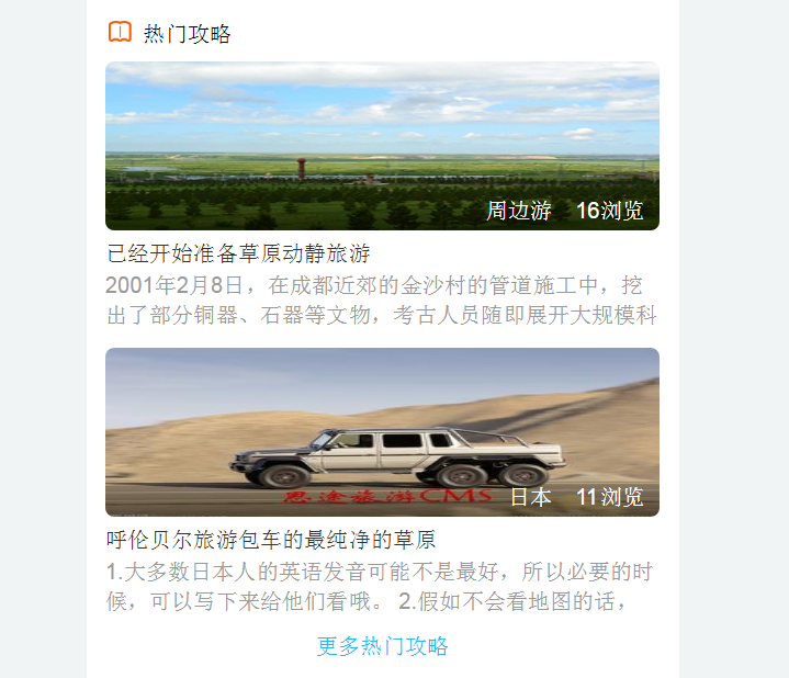 熱門攻略模塊:前臺展示2個攻略文章內容。