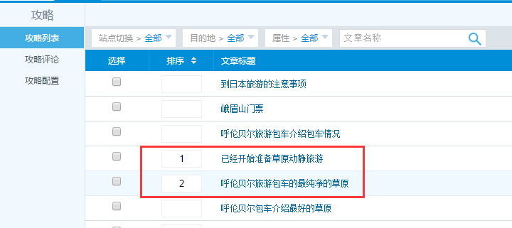 2:排序的情況下:按照后臺攻略排序1、2的兩個攻略文章展示。