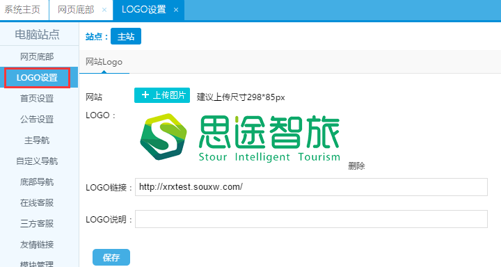 此模板的logo設置和標準系統logo一致,都是在電腦版本的logo設置位置,只不過此處的圖片建議使用png透明模式,這樣在前臺頁面背景圖上就不會出現色塊。